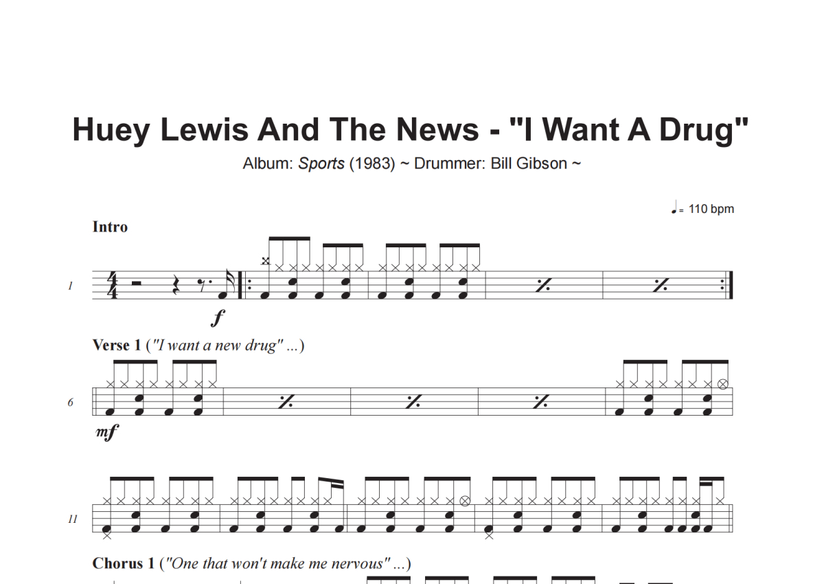 Huey Lewis And The News《I Want A New Drug》架子鼓谱