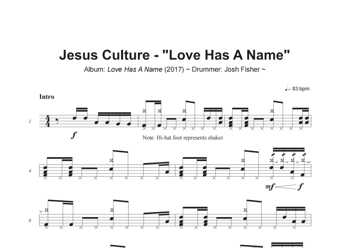 Jesus Culture《Love Has A Name》架子鼓谱