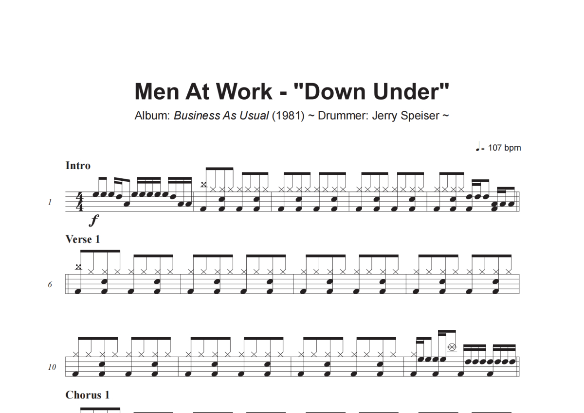 Men At Work《Down Under》架子鼓谱