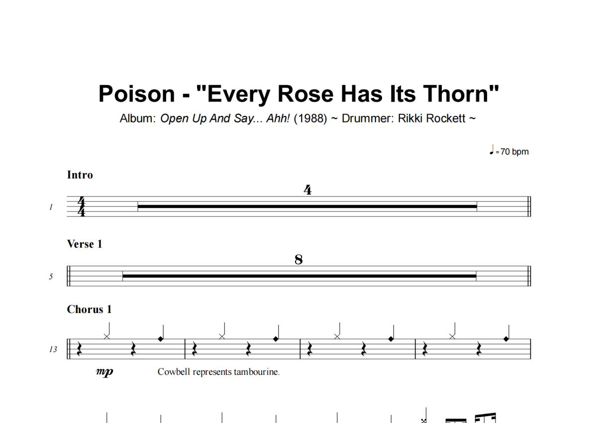 Poison《Every Rose Has Its Thorn》架子鼓谱