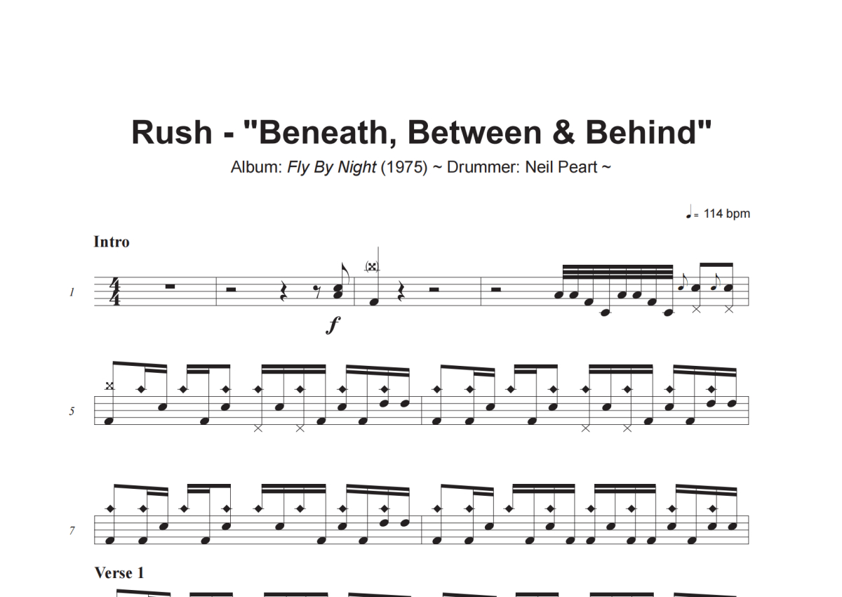 《Beneath, Between _ Behind》是Rush演唱的一首歌曲,这份架子鼓谱共有四张高清图谱,图谱由 @小虎鼓谱 编配上传,图谱使用五线谱编配,使用这份Beneath, Between _ Behind架子鼓谱,你将能够轻松地敲打出这首Rush的Beneath, Between _ Behind,快来尝试吧。