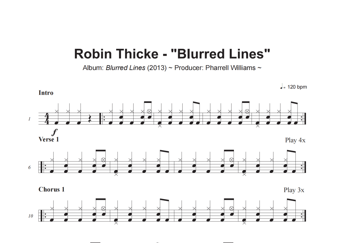 Robin Thicke《Blurred Lines》架子鼓谱