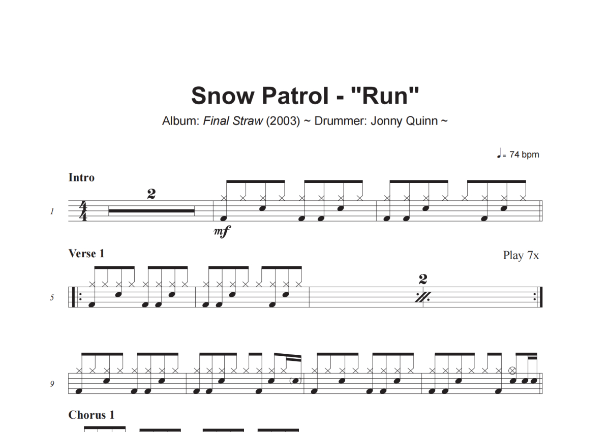 Snow Patrol《Run》架子鼓谱