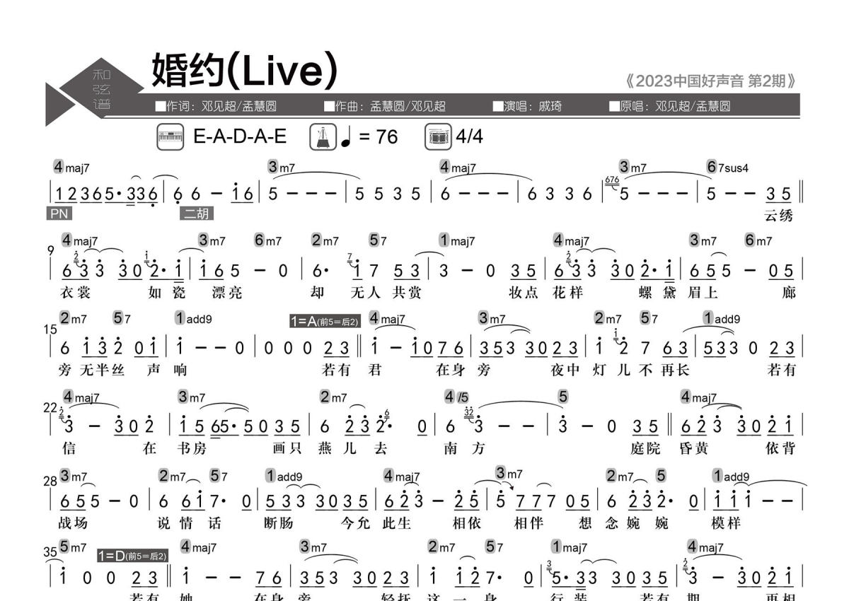 戚琦《婚约(Live)》简谱 - 数字级数和弦谱