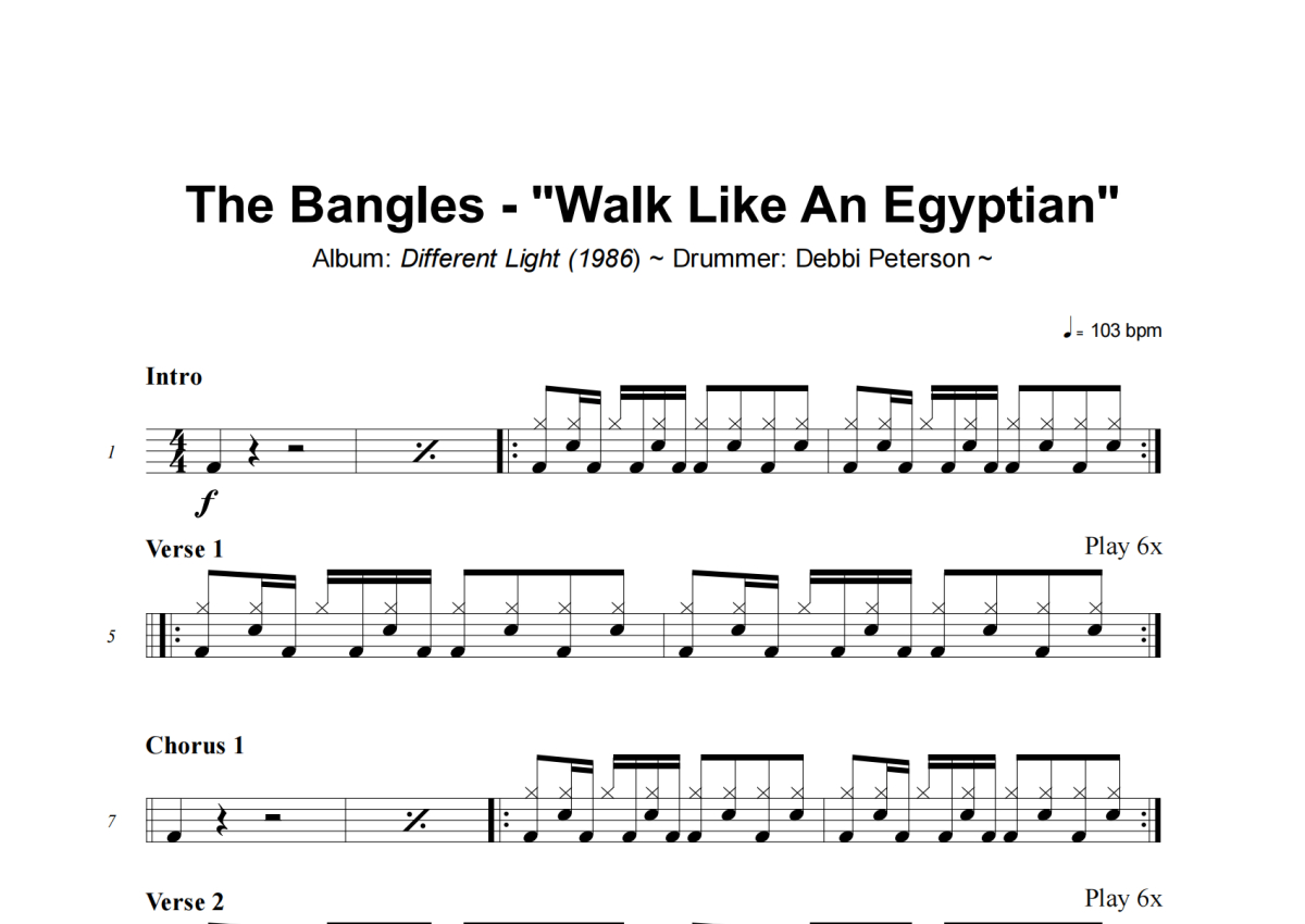 The Bangles《Walk Like An Egyptian》架子鼓谱