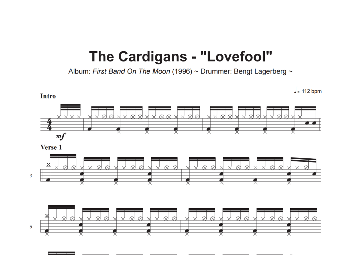 The Cardigans《Lovefool》架子鼓谱
