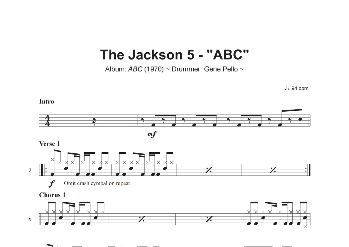 The Jackson 5《ABC》架子鼓谱