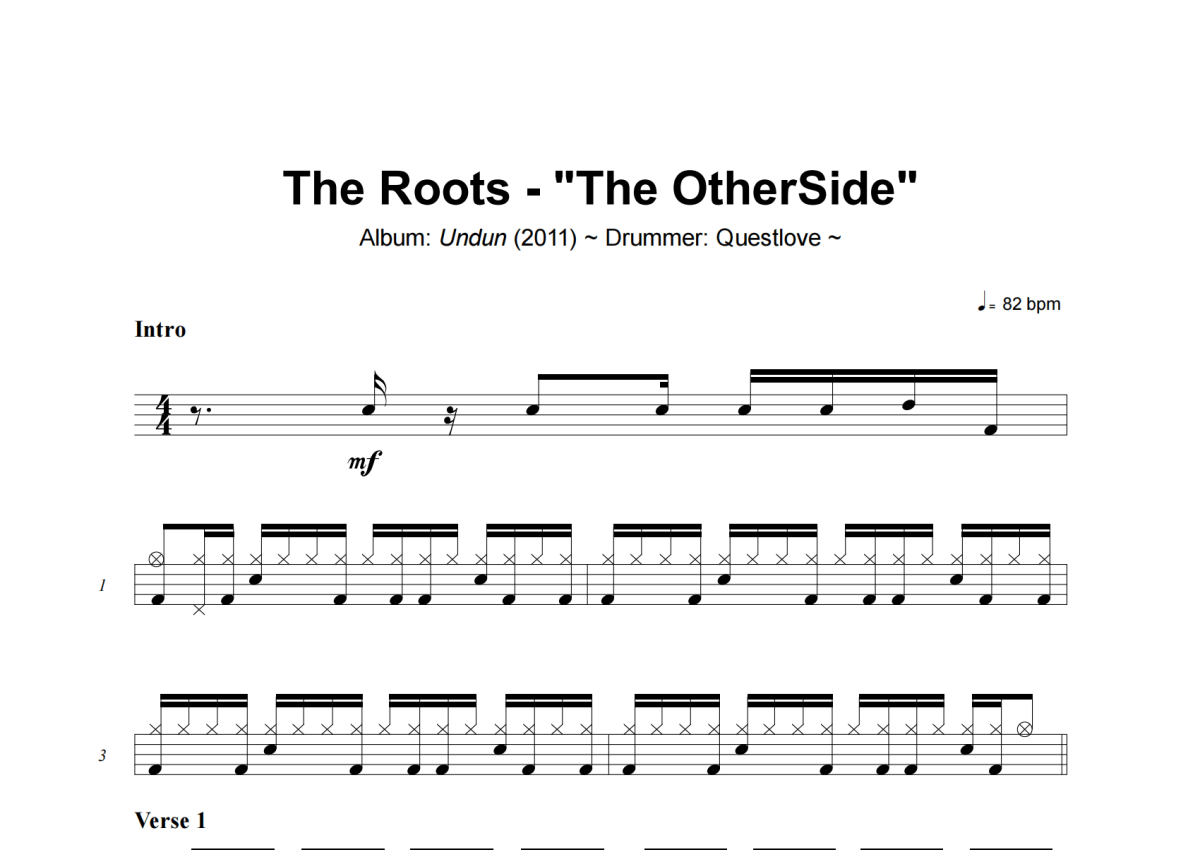 The Roots《The OtherSide》架子鼓谱