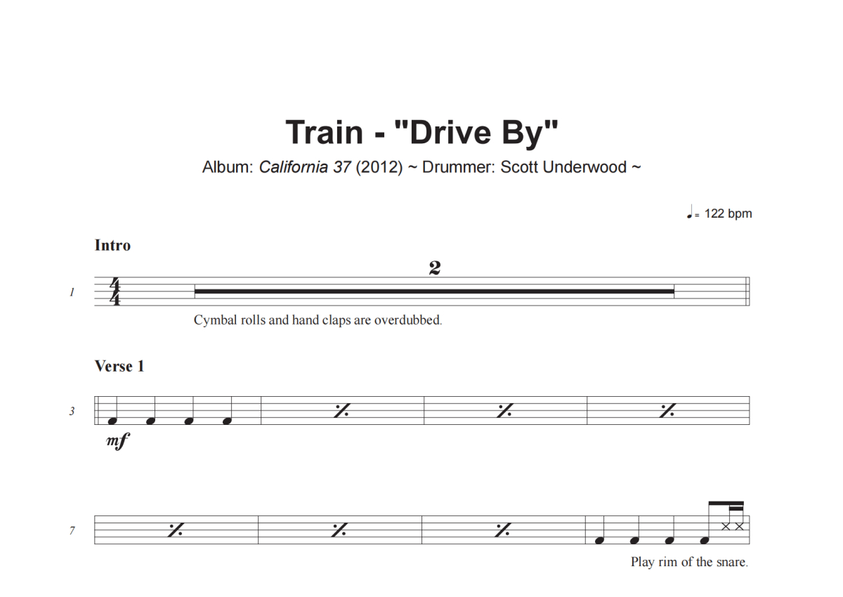 Train《Drive By》架子鼓谱