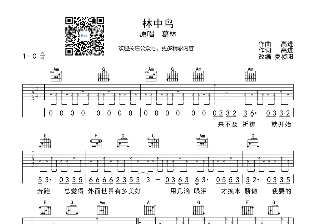 葛林《林中鸟》吉他谱 - C调弹唱六线谱