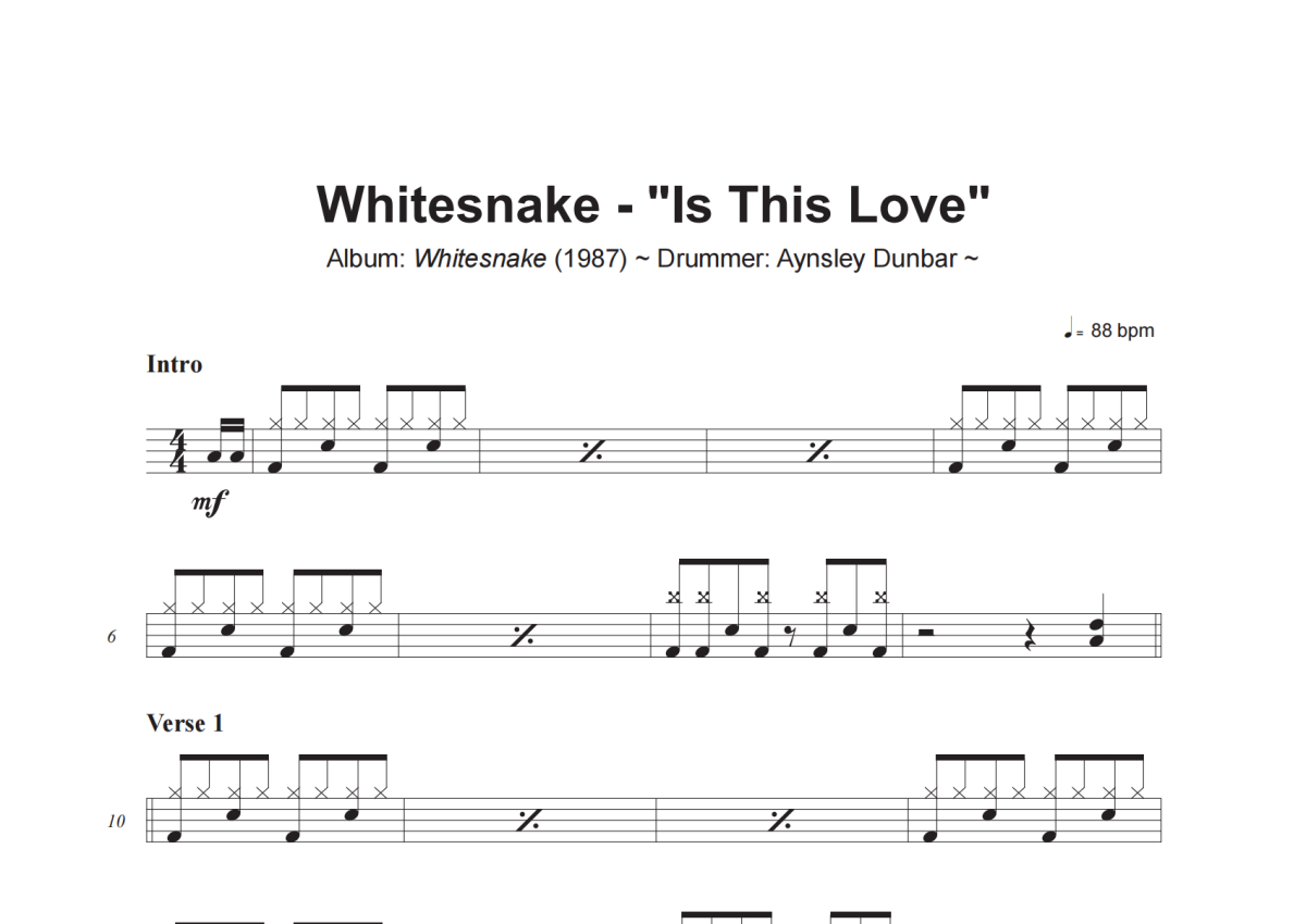 Whitesnake《Is This Love》架子鼓谱