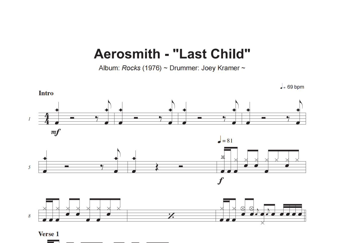 《Last Child》是Aerosmith演唱的一首歌曲,这份架子鼓谱共有三张高清图谱,图谱由 @小虎鼓谱 编配上传,图谱使用五线谱编配,使用这份Last Child架子鼓谱,你将能够轻松地敲打出这首Aerosmith的Last Child,快来尝试吧。