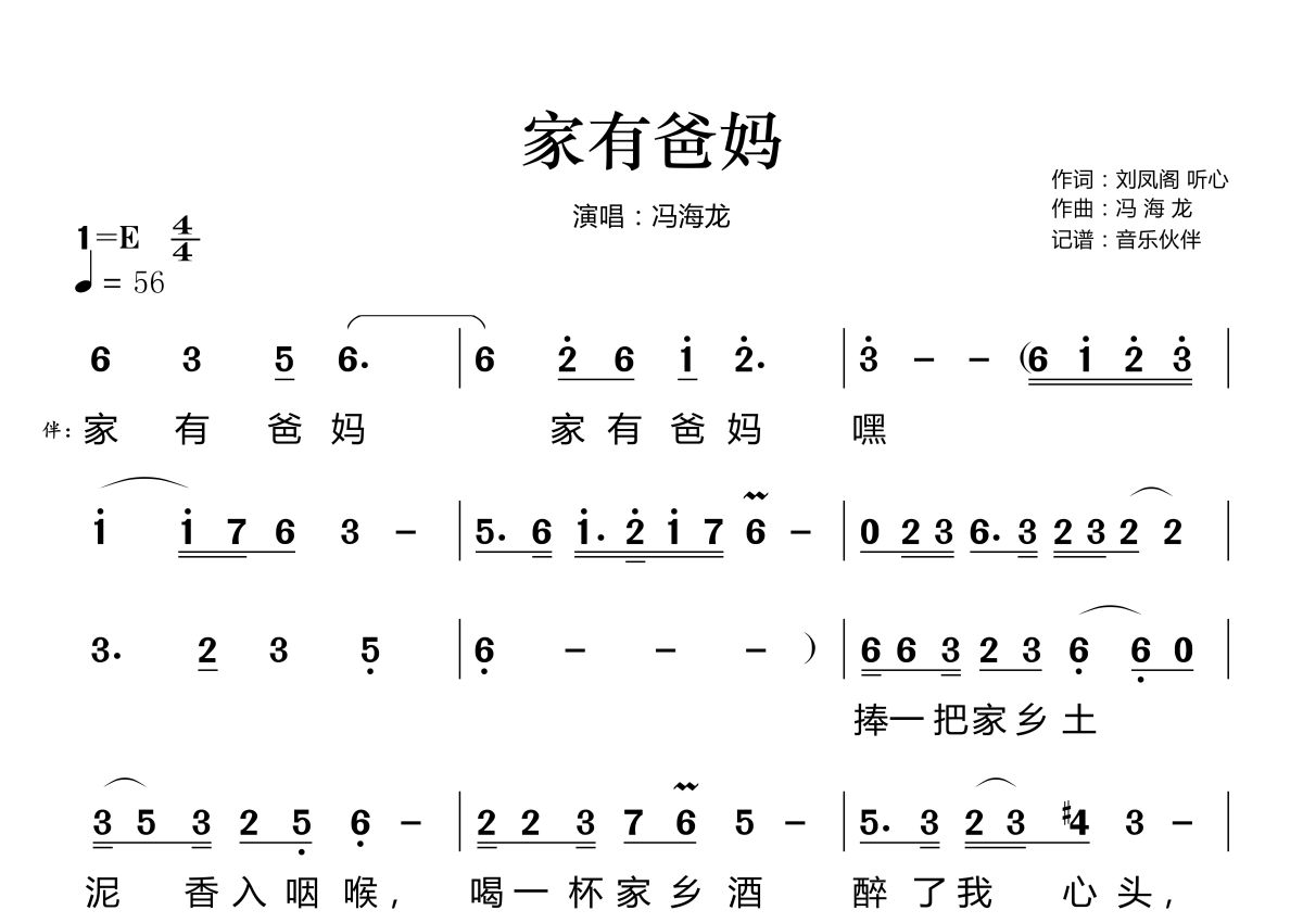 家有爸妈简谱 - 冯海龙演唱
