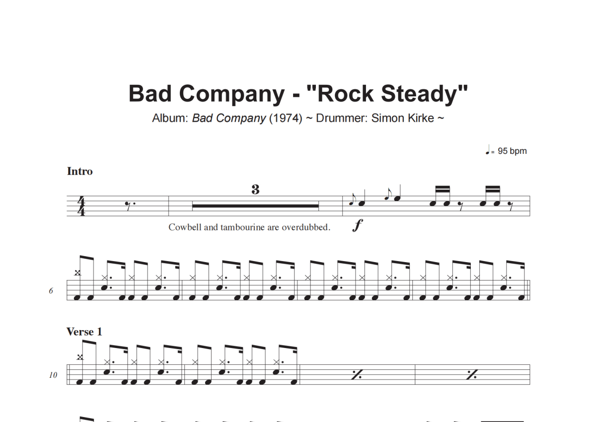 Bad Company《Rock Steady》架子鼓谱