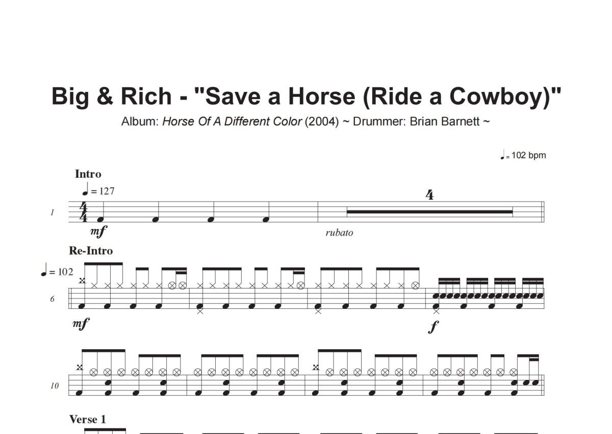 Big _ Rich《Save A Horse (Ride A Cowboy)》架子鼓谱