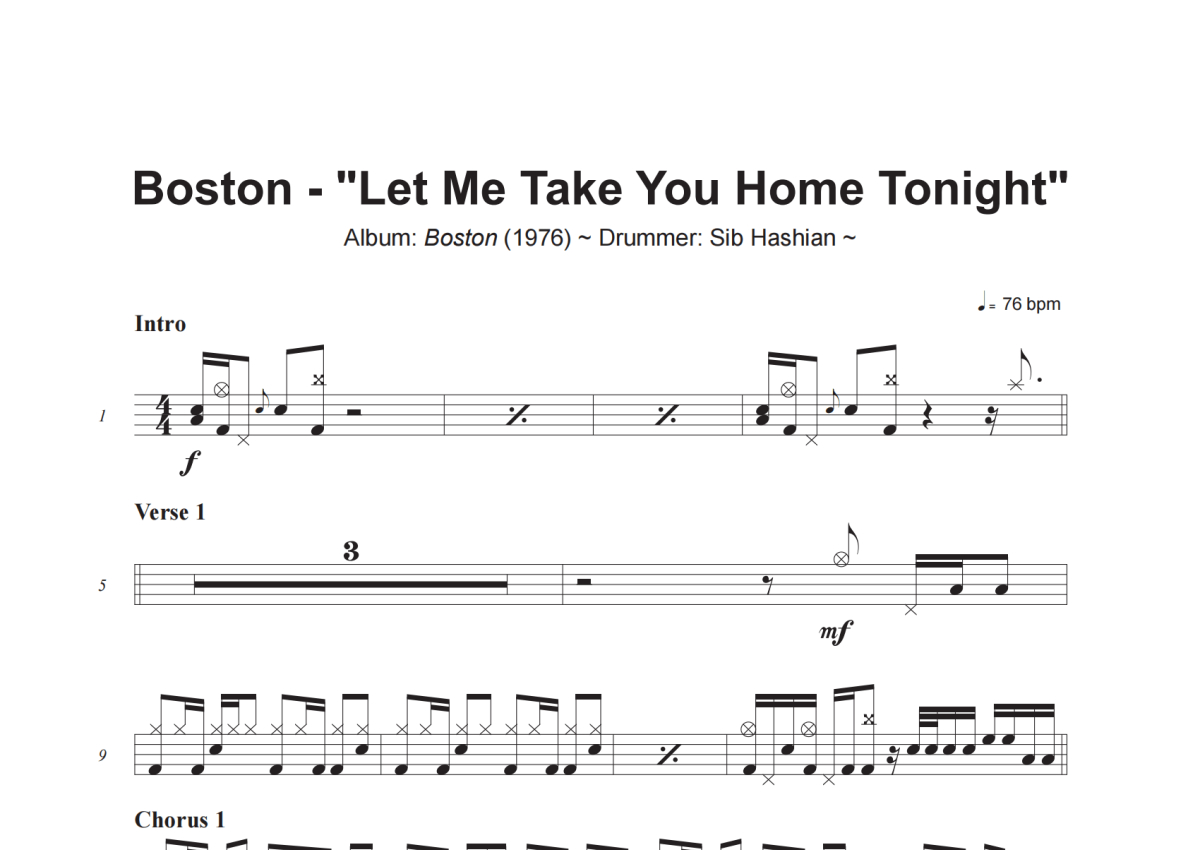 Boston《Let Me Take You Home Tonight》架子鼓谱