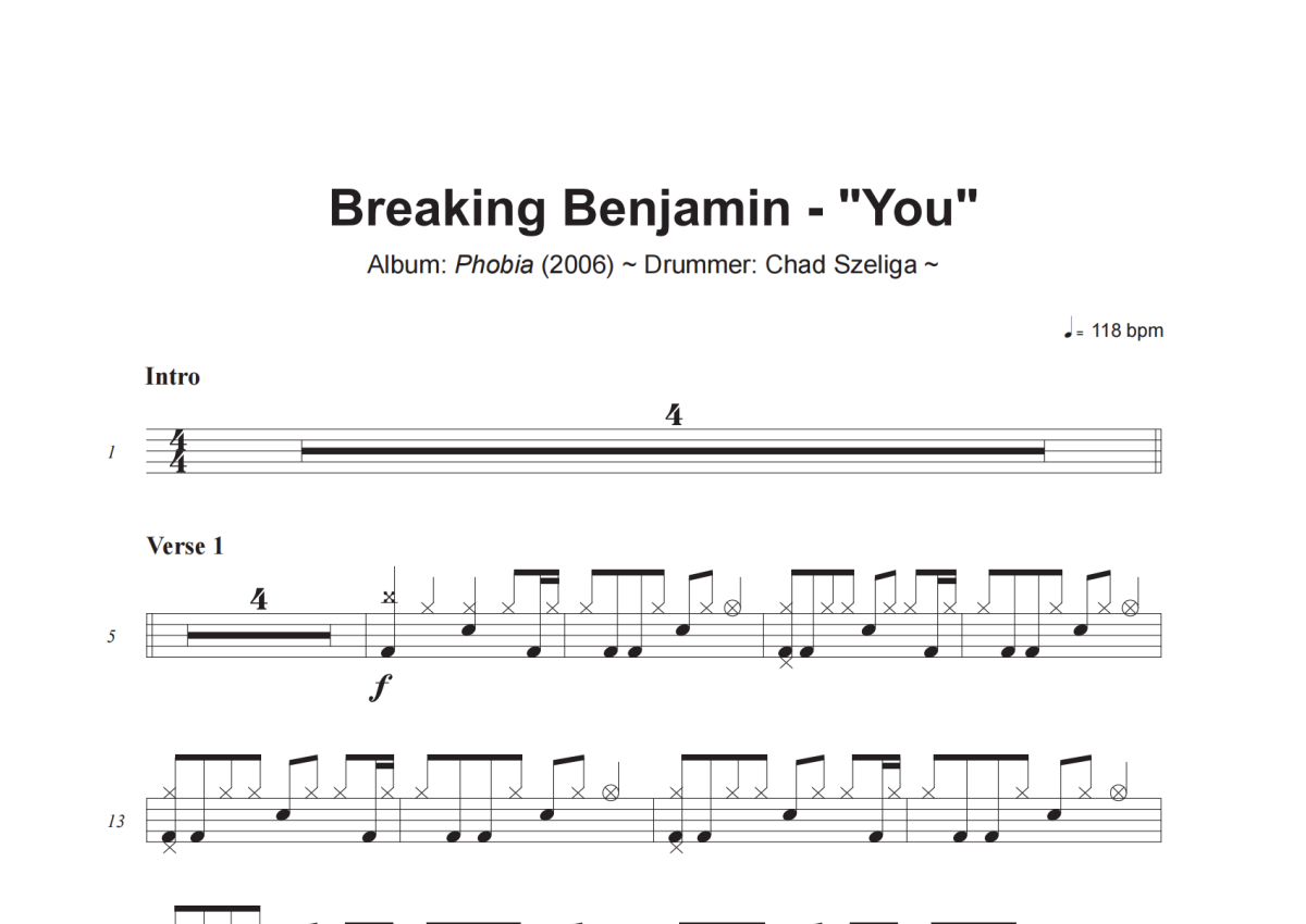 《You》是Breaking Benjamin演唱的一首歌曲,这份架子鼓谱共有三张高清图谱,图谱由 @小虎鼓谱 编配上传,图谱使用五线谱编配,使用这份You架子鼓谱,你将能够轻松地敲打出这首Breaking Benjamin的You,快来尝试吧。