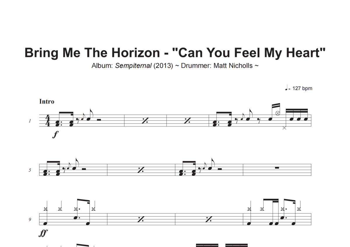 Bring Me The Horizon《Can You Feel My Heart》架子鼓谱