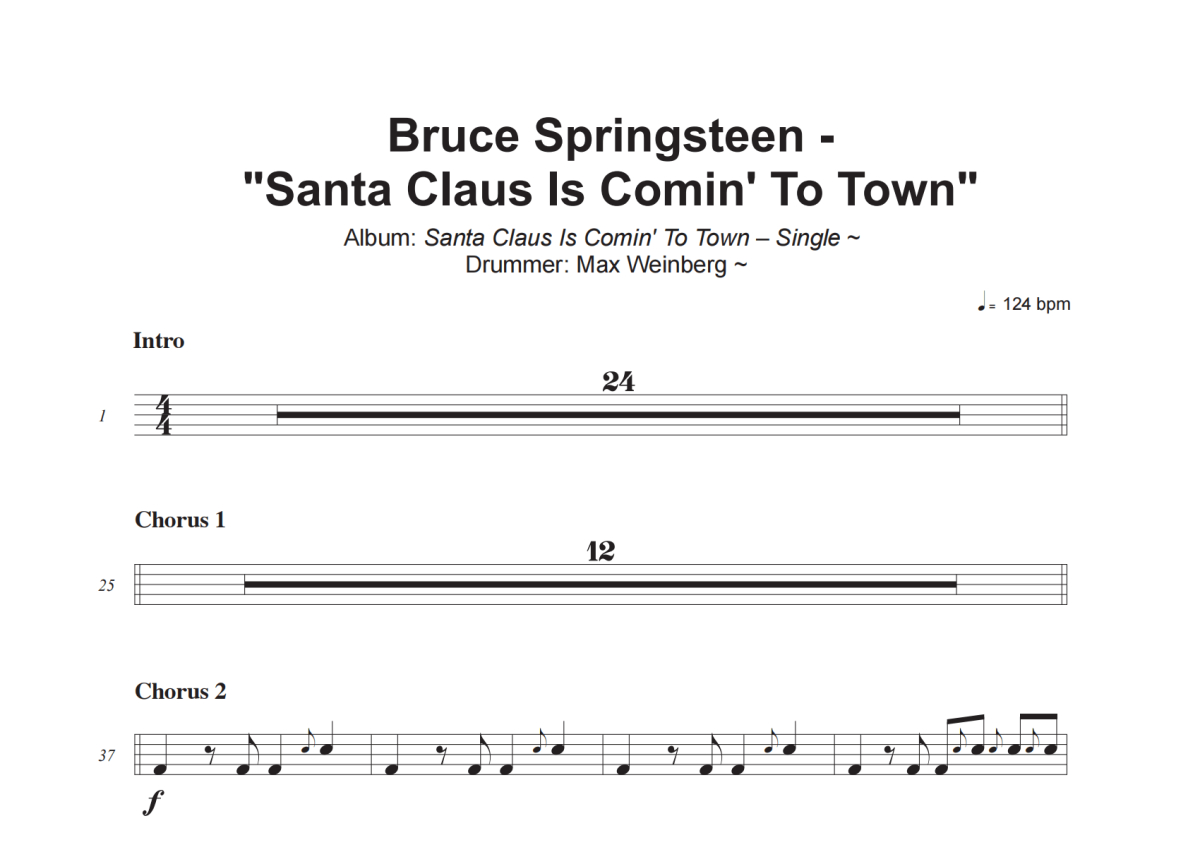 Bruce Springsteen《Santa Claus Is Comin_ To Town》架子鼓谱