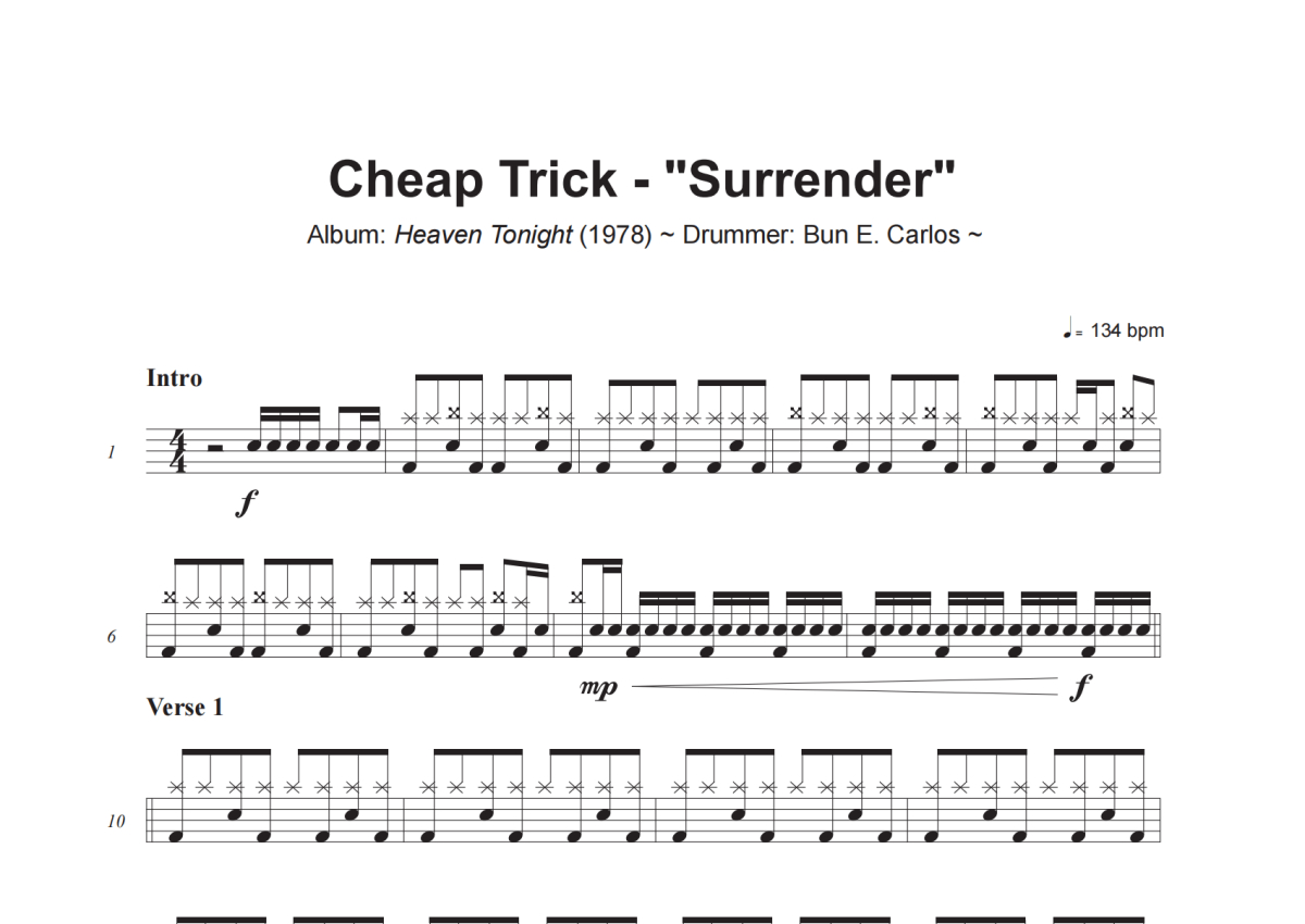Cheap Trick《Surrender》架子鼓谱