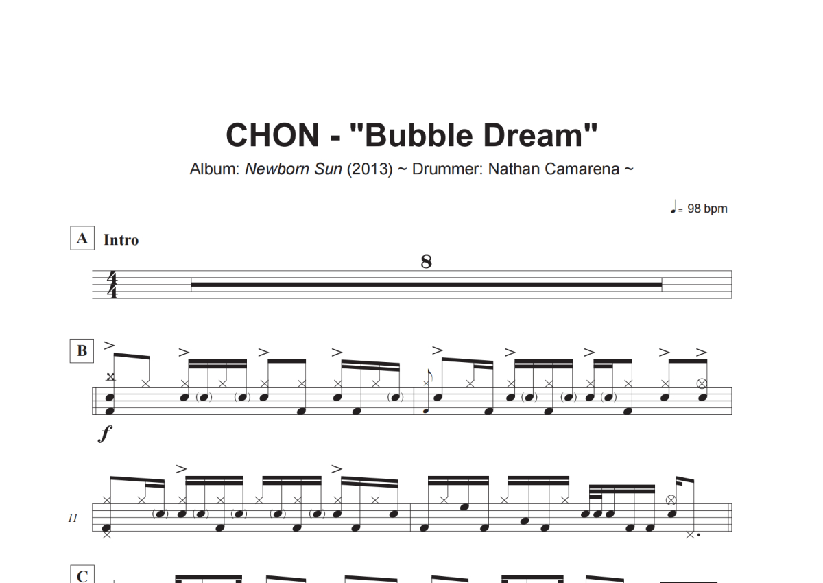 CHON《Bubble Dream》架子鼓谱