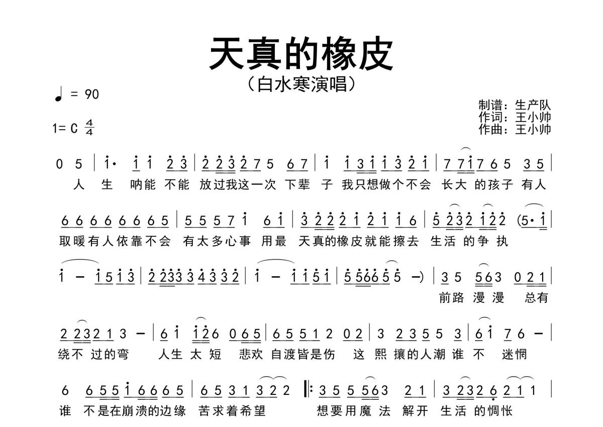 白水寒《天真的橡皮》简谱 - 原版简谱