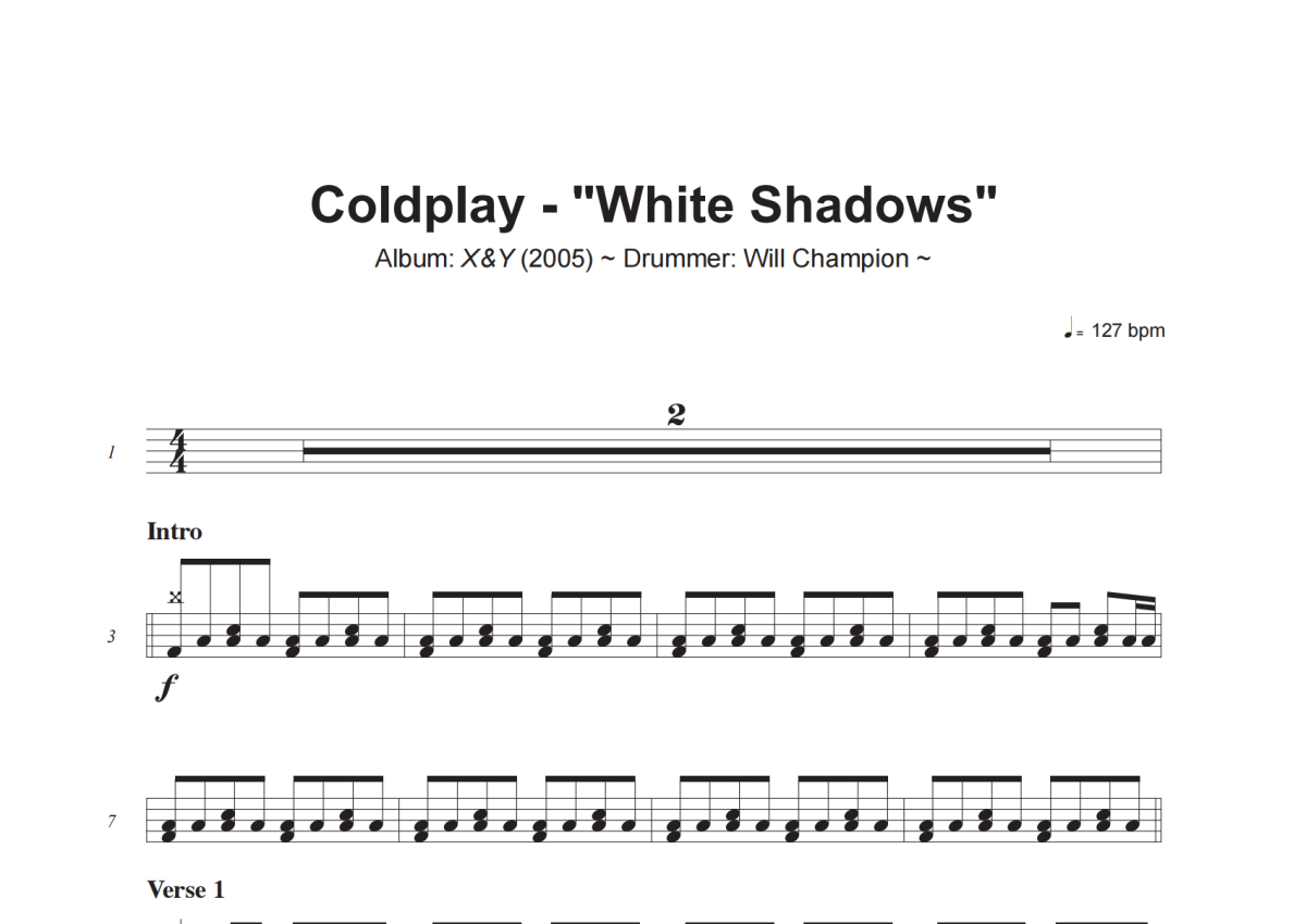 《White Shadows》是Coldplay演唱的一首歌曲,这份架子鼓谱共有五张高清图谱,图谱由 @小虎鼓谱 编配上传,图谱使用五线谱编配,使用这份White Shadows架子鼓谱,你将能够轻松地敲打出这首Coldplay的White Shadows,快来尝试吧。