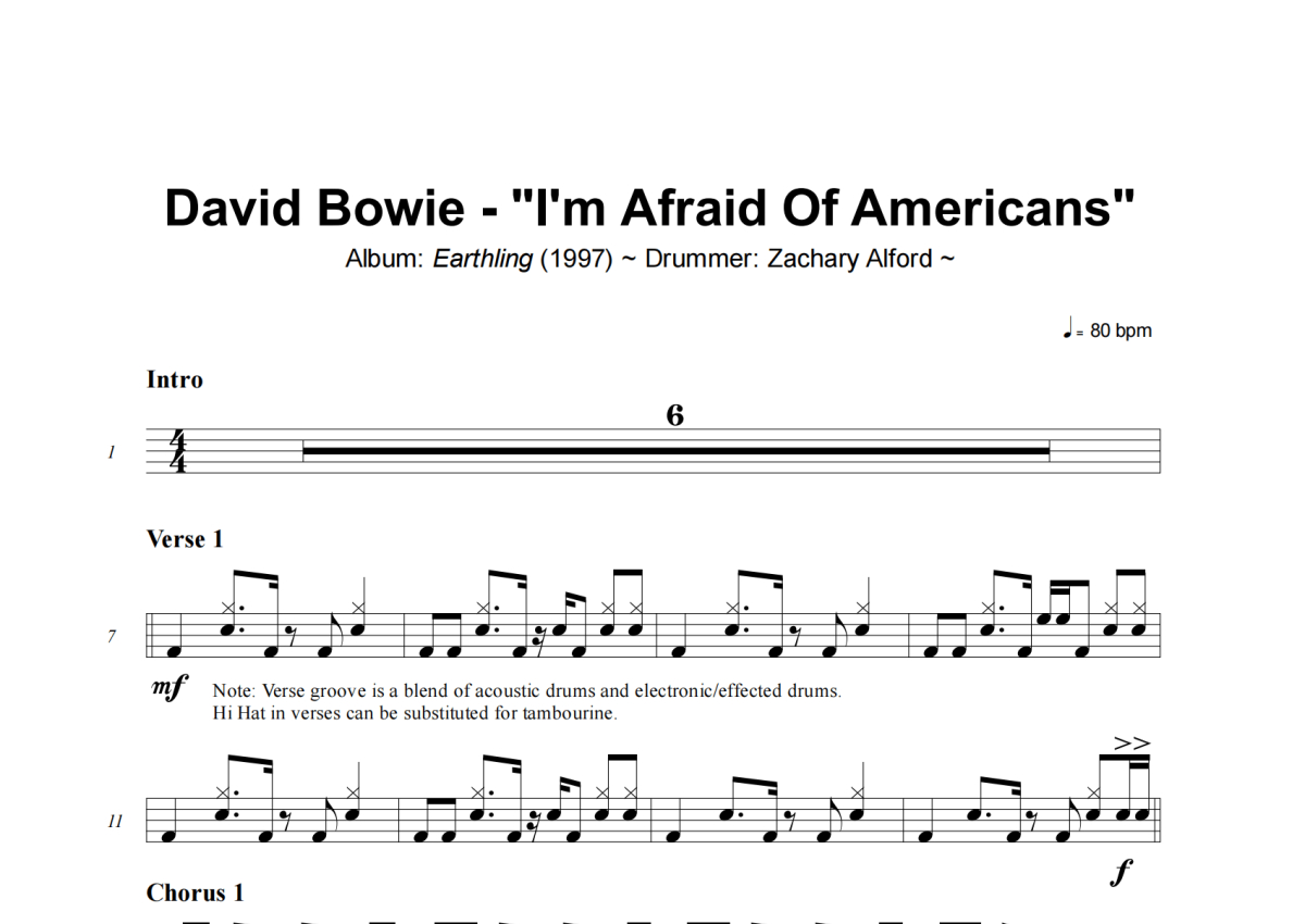 David Bowie《I'm Afraid Of Americans》架子鼓谱