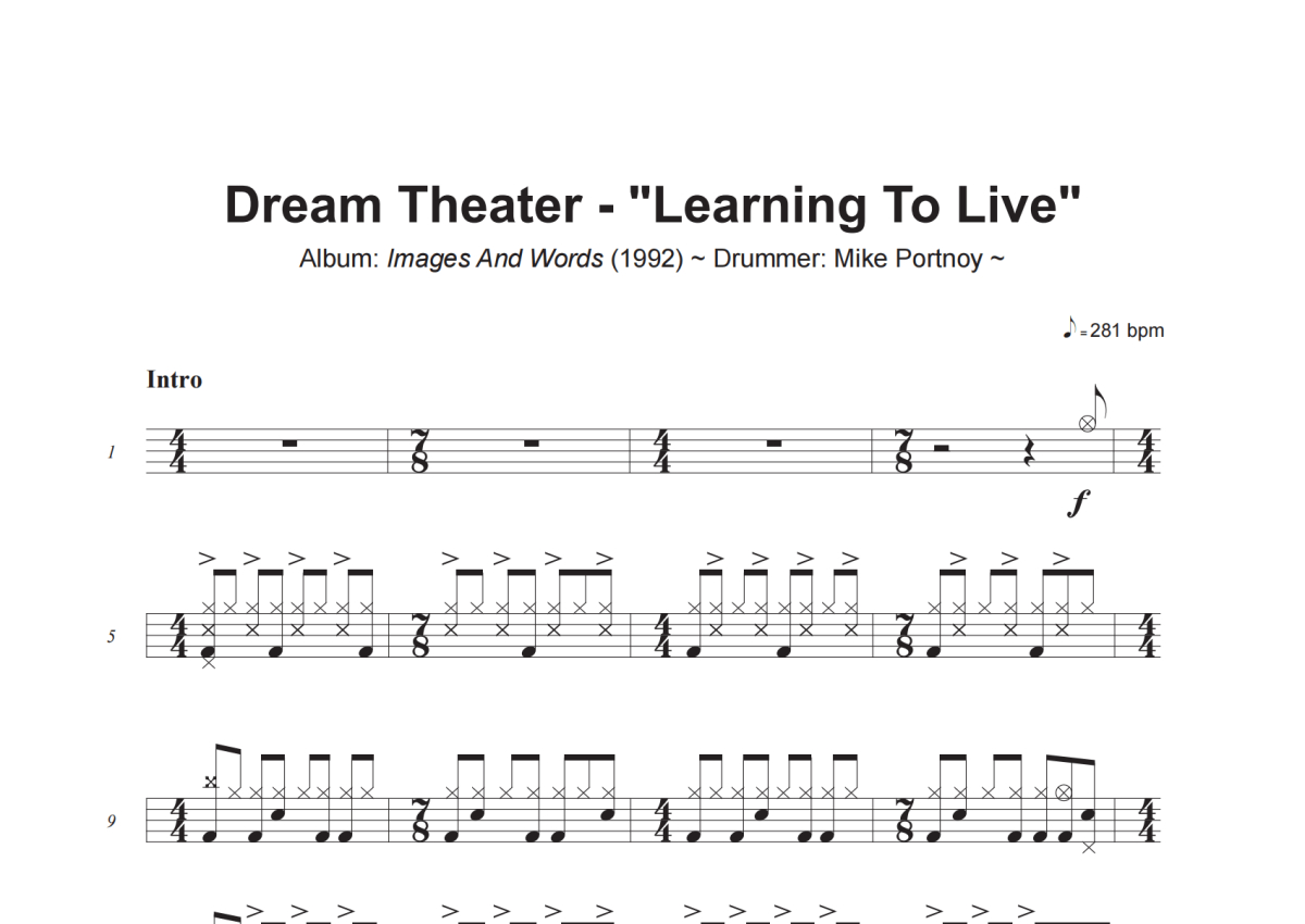 Dream Theater《Learning To Live》架子鼓谱