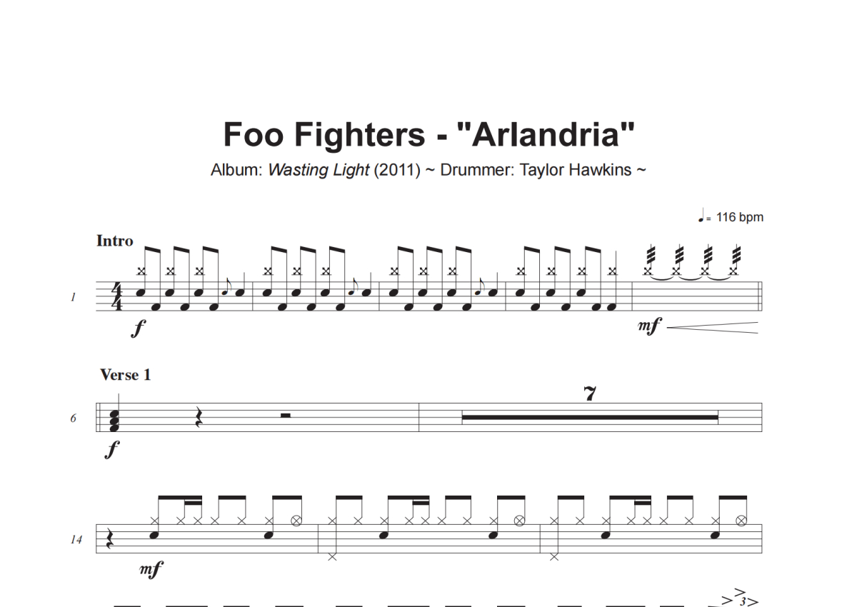 Foo Fighters《Arlandria》架子鼓谱