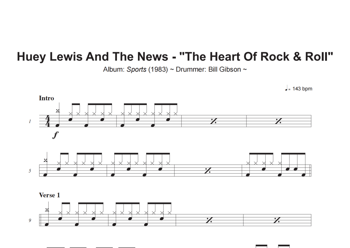 Huey Lewis And The News《The Heart Of Rock _ Roll》架子鼓谱