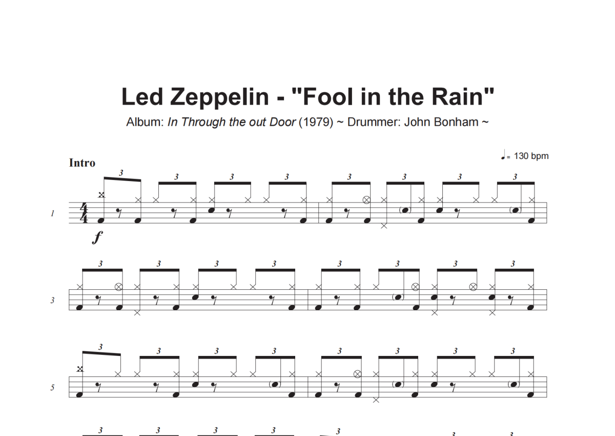Led Zeppelin《Fool In The Rain》架子鼓谱