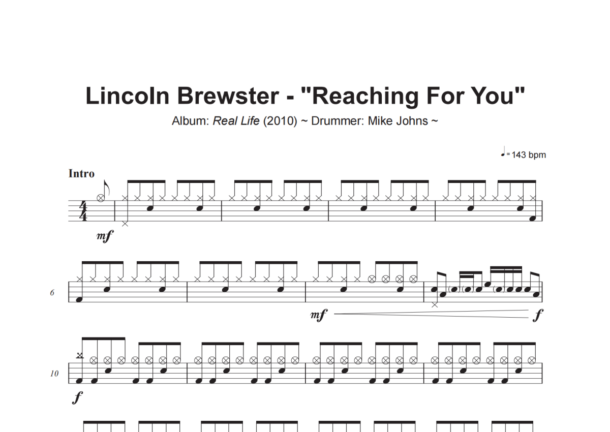 Lincoln Brewster《Reaching For You》架子鼓谱