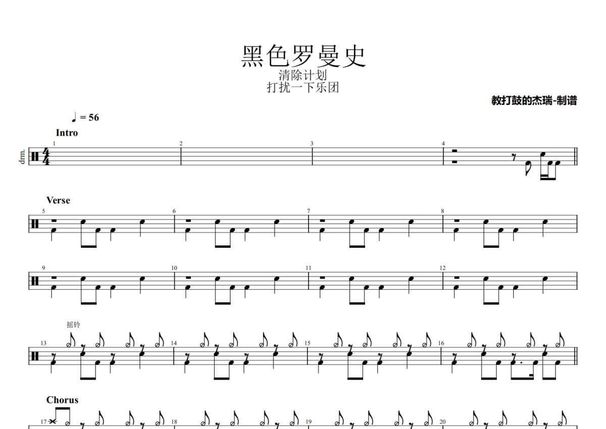打扰一下乐团《黑色罗曼史》架子鼓谱
