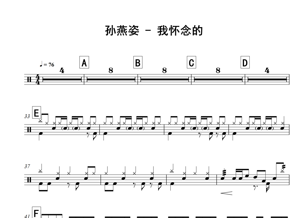 孙燕姿《我怀念的》架子鼓谱