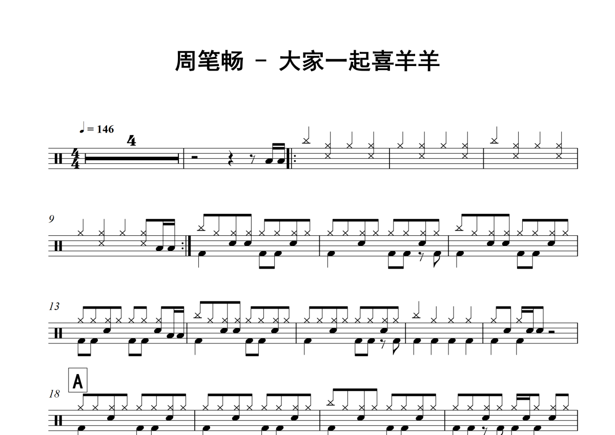 大家一起喜羊羊架子鼓谱 - 周笔畅演唱