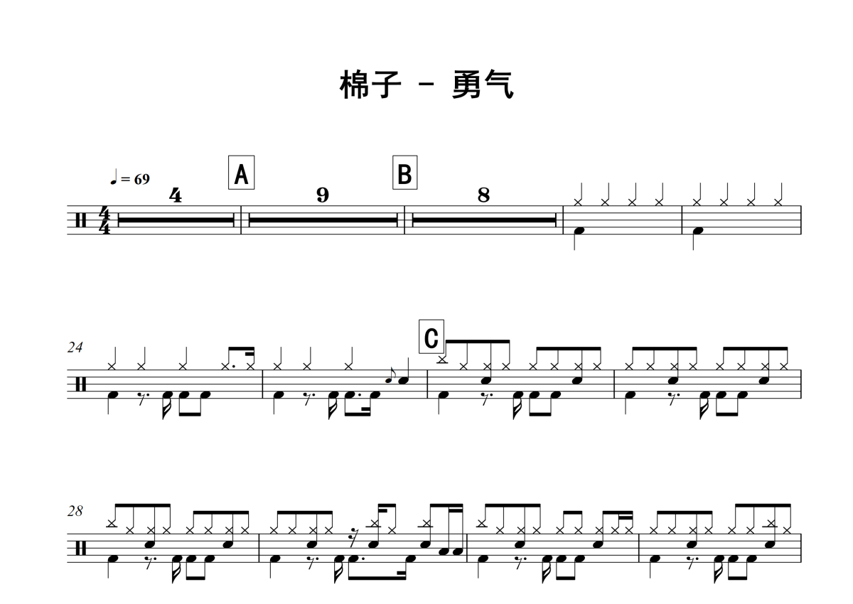 棉子《勇气》架子鼓谱