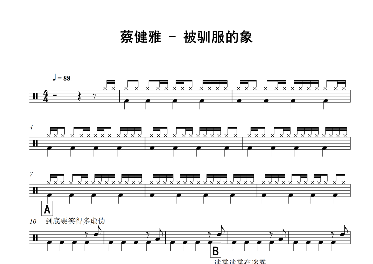 蔡健雅《被驯服的象》架子鼓谱 - 简易版