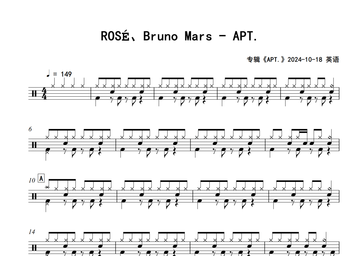 ROSÉ、Bruno Mars《APT.》架子鼓谱