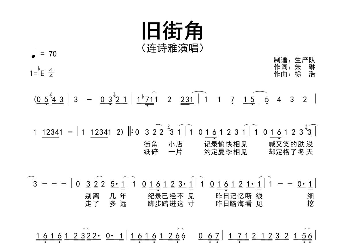 连诗雅《旧街角》简谱 - 原版简谱