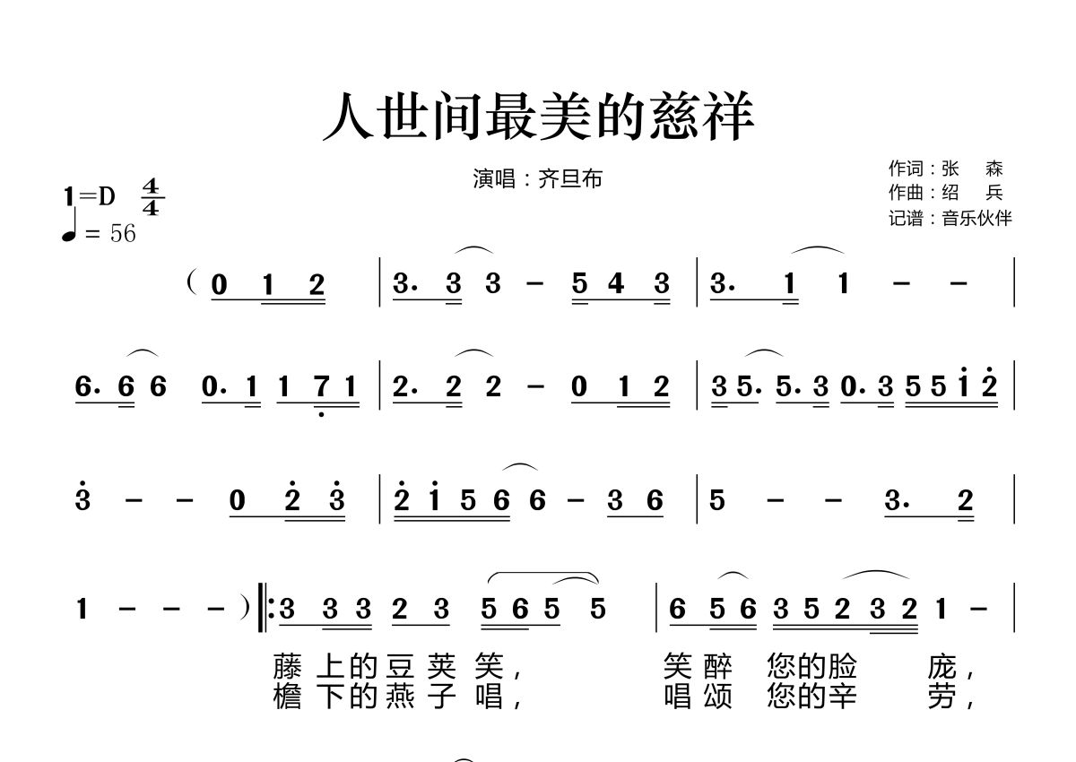 人世间最美的慈祥简谱 - 齐旦布演唱