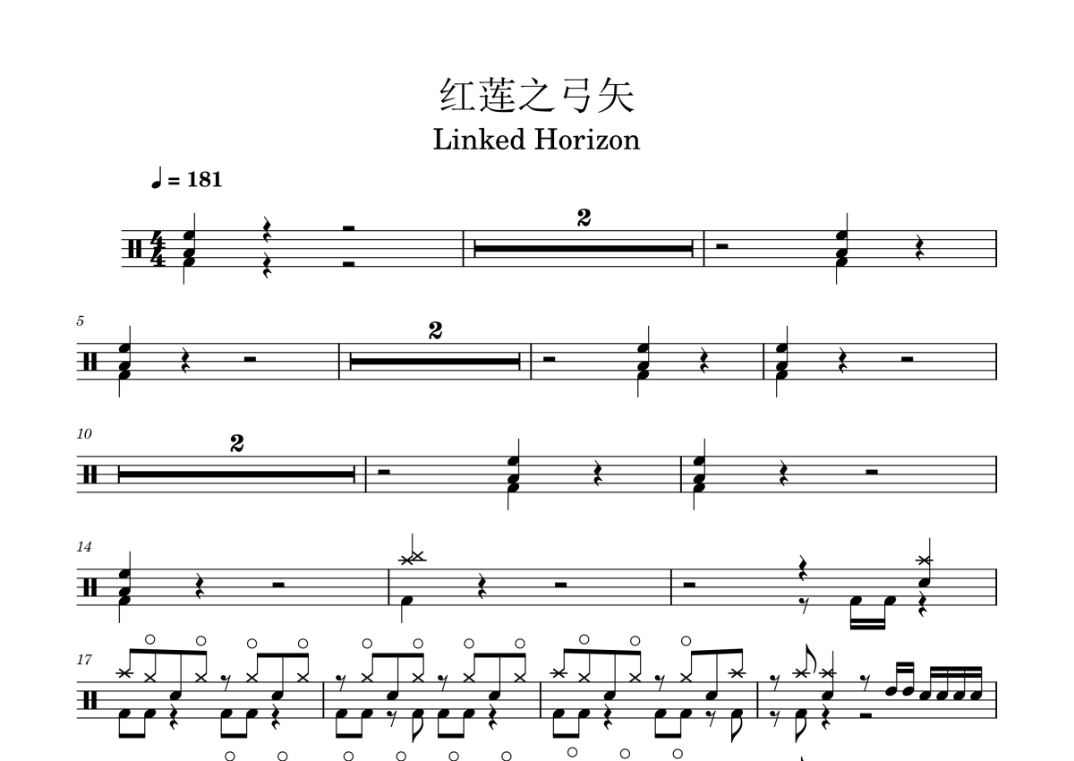 進撃の軌跡《红莲之弓矢》架子鼓谱