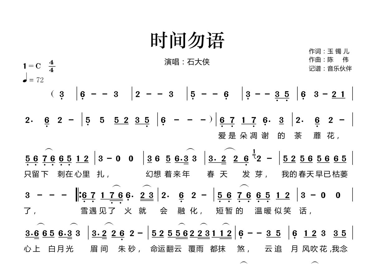 时间勿语简谱 - 石大侠演唱