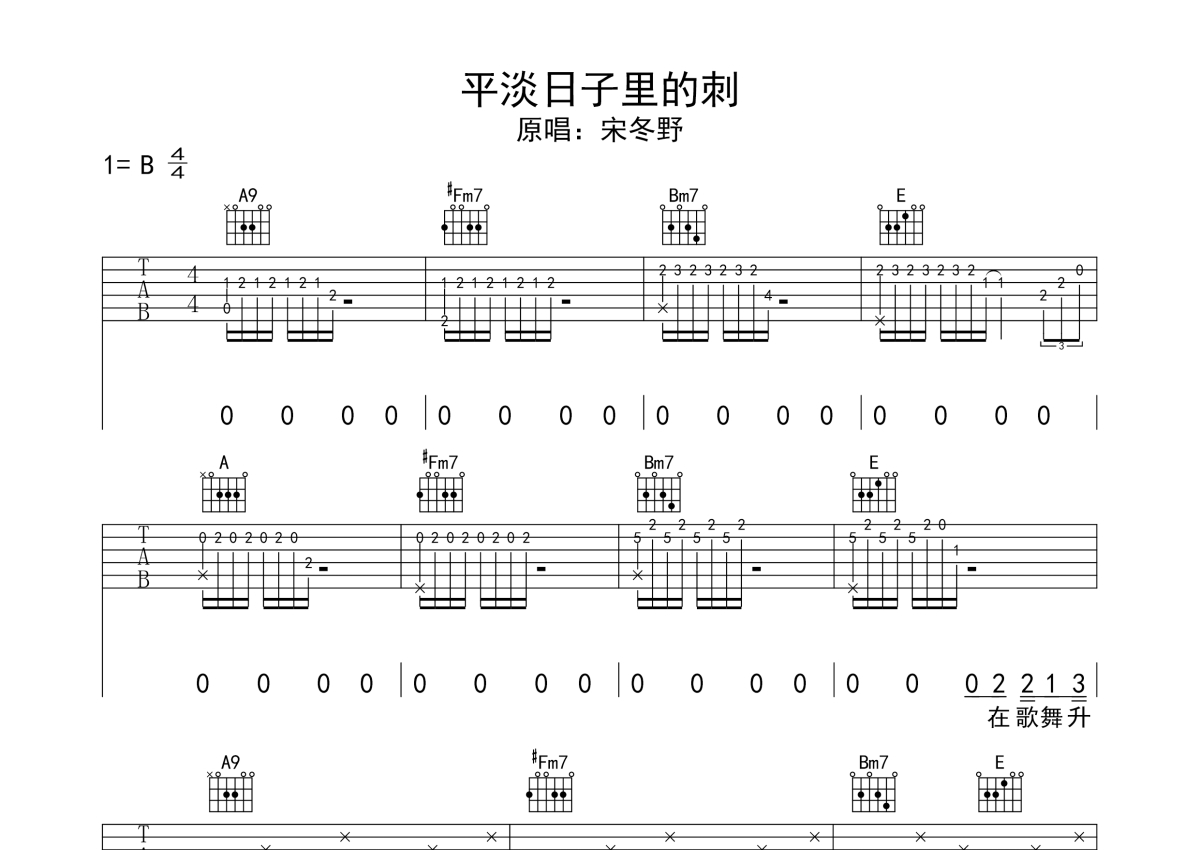 宋冬野《平淡日子里的刺》吉他谱 - B调弹唱六线谱