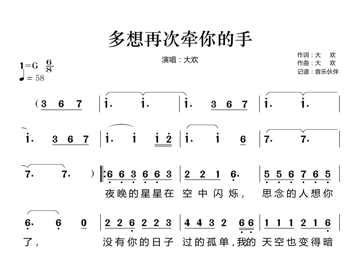 《多想再次牵你的手》是大欢演唱的一首歌曲,这份简谱共有两张高清图谱,图谱由 @音乐伙伴 编配上传。