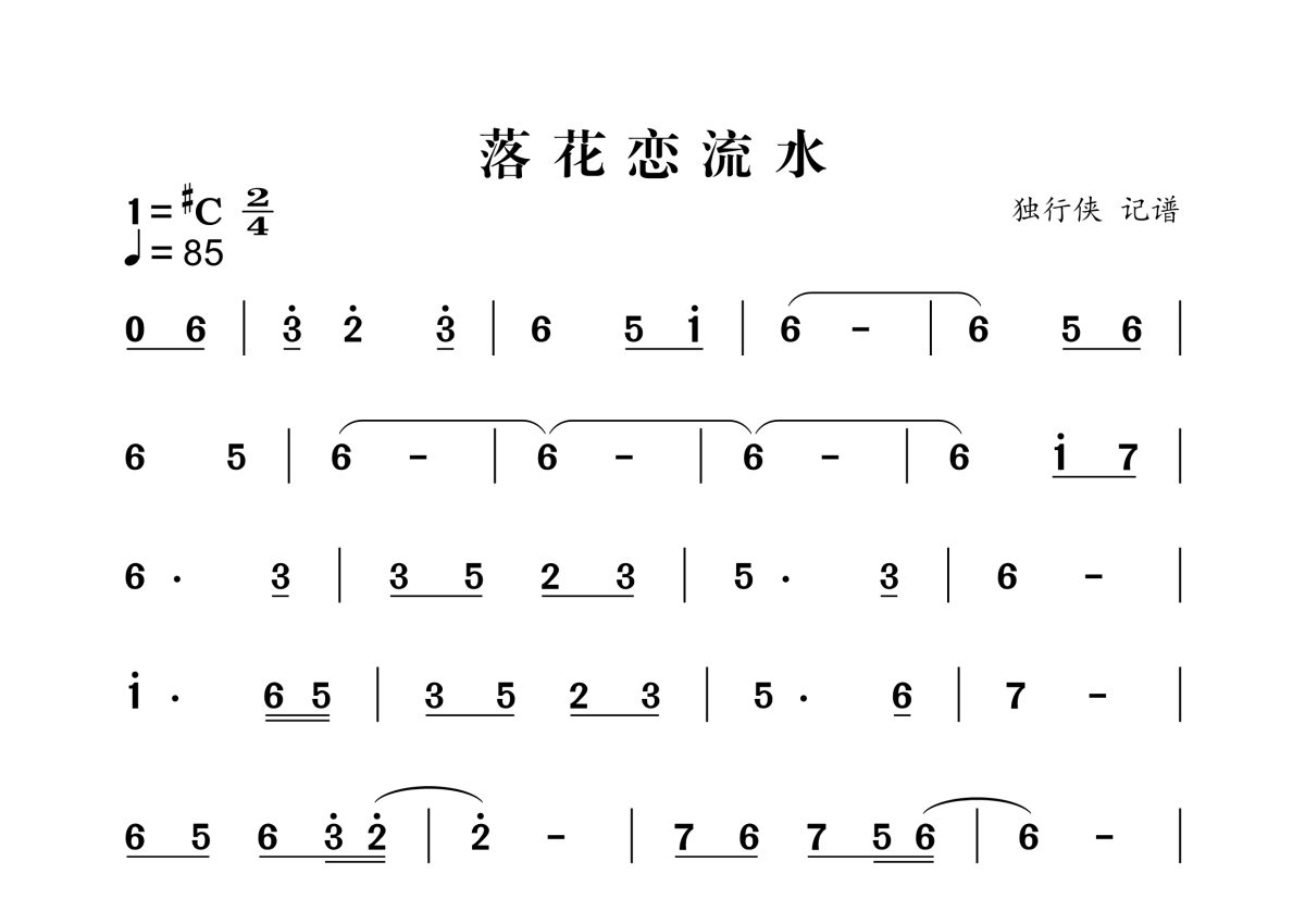 《落花恋流水》是纯音乐演唱的一首歌曲,拍号为2/4拍,歌曲速度为每分钟84拍,这份简谱共有一张高清图谱,图谱由 @独行侠 编配上传。