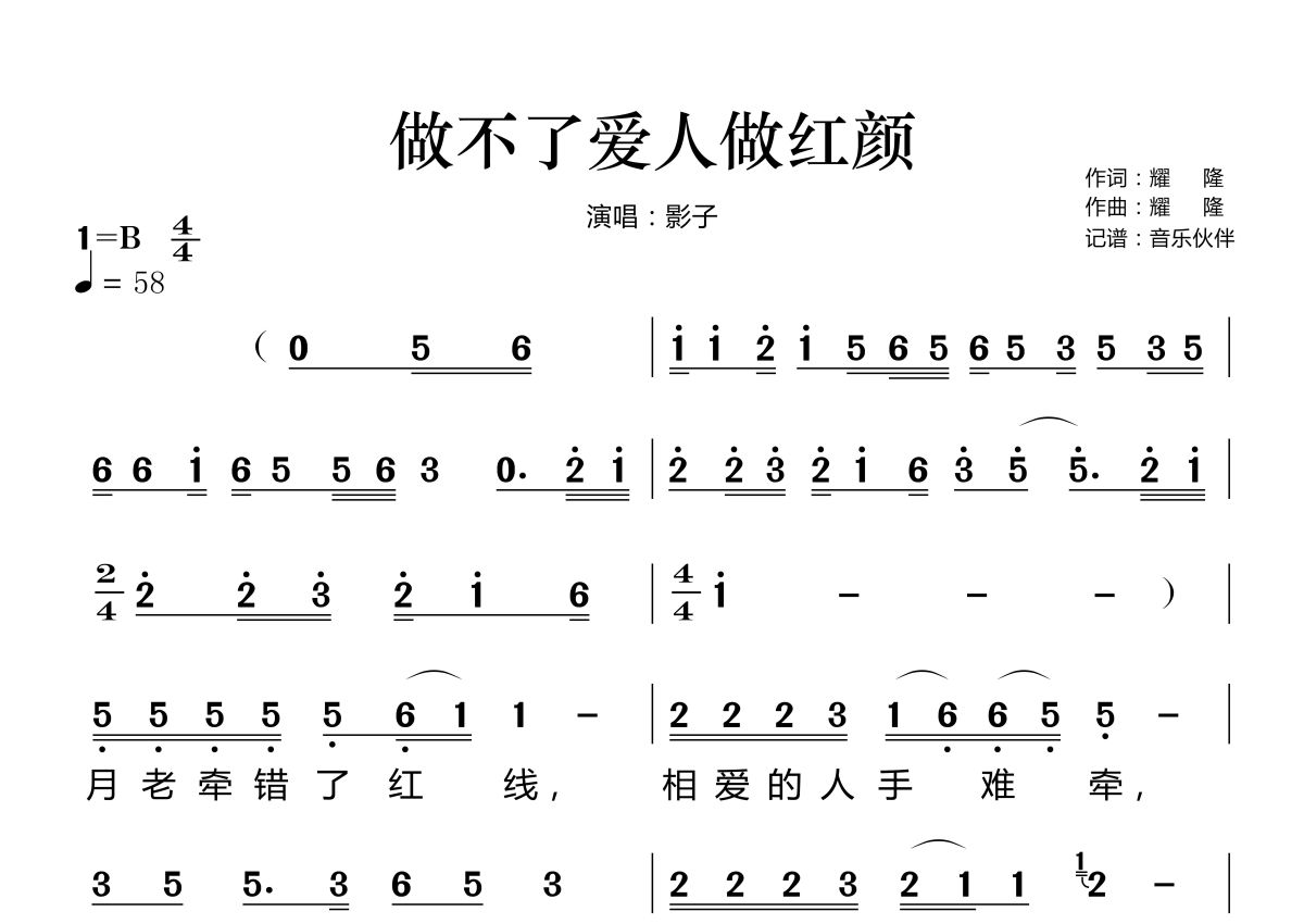 做不了爱人做红颜简谱 - 影子演唱
