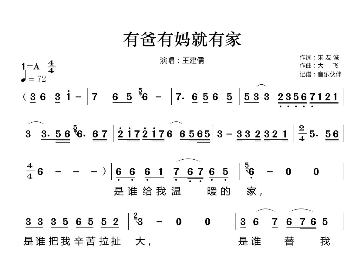 有爸有妈就有家简谱 - 王建儒演唱