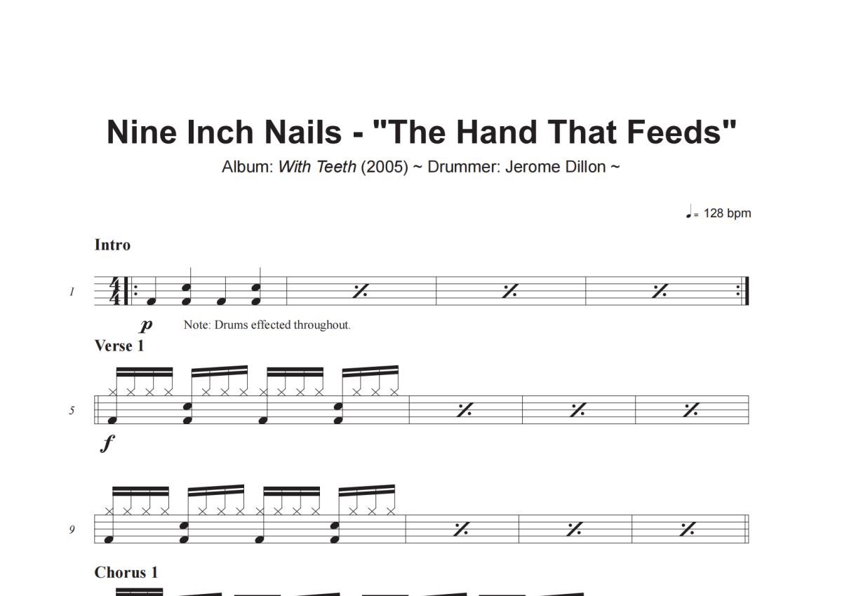 Nine Inch Nails《The Hand That Feeds》架子鼓谱