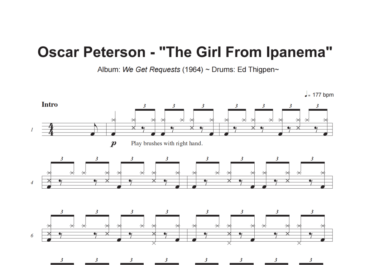 Oscar Peterson《The Girl From Ipanema》架子鼓谱